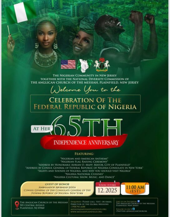 You’re welcome to celebrate our Missional Diversity with the Federal Republic of Nigeria on Sunday, October 12, 2025 at 11:00am (EST). Kindly click on the flyer for more information.